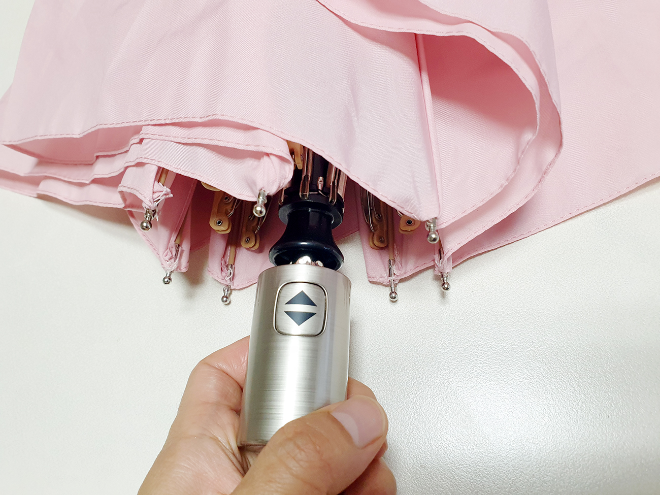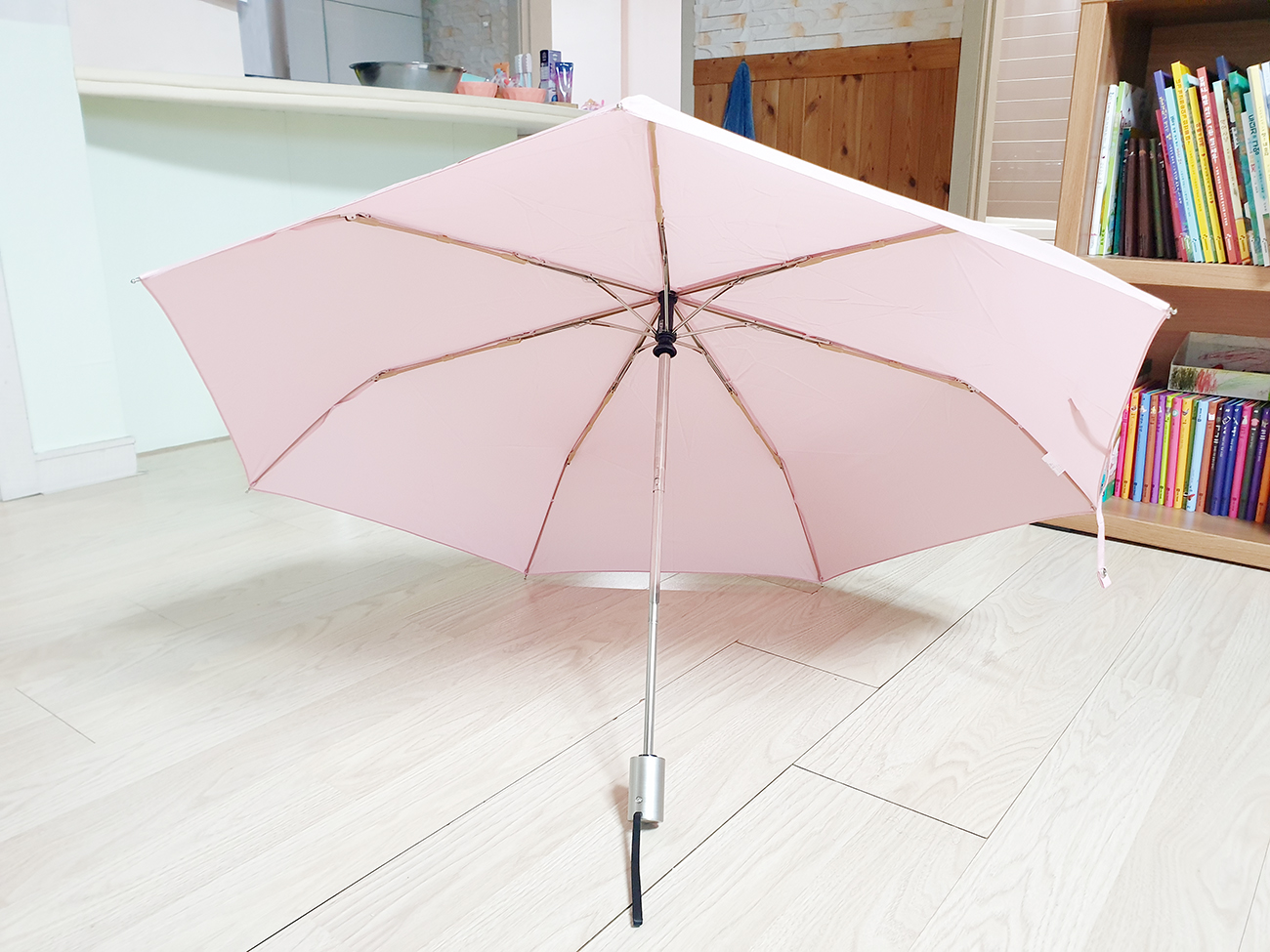 질 스튜어트 우양산 손잡이 부분 보시면, 버튼이 있죠? 버트 눌러 확 펴시면 되시고, 접을 때에도 바로 당겨서 접는 것이 아니라, 버튼 누르면 우산 날개가 바로 접힌답니다. 핑크 색상이라 여성분들이 좋아할 만한 우양산입니다. 더욱 젊은 여성분들이라면, 선호하게 되는 질 스튜어트 우양산입니다.