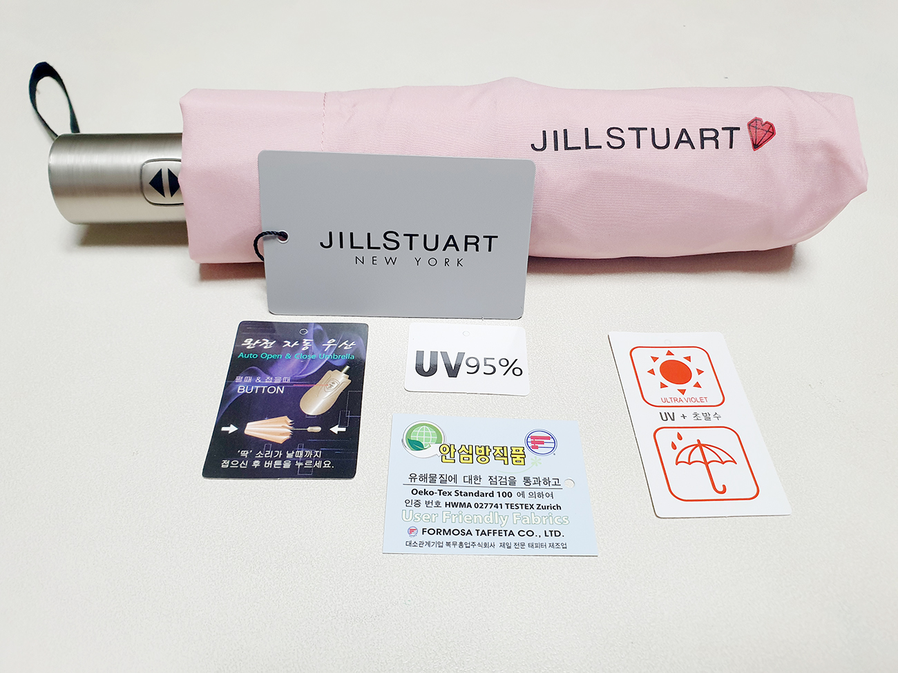 색상은 핑크 색상의 완전 자동 3단 우양산이에요. UV 95%되는 우양산으로, 햇볕을 95% 차단해 줄 수 있는 우양산입니다. 강한 자외선으로부터 피부를 보호할 수 있으며, 태양의 열선을 반사하여 쾌적함과 청량감을 전해주며, 방수 가공된 겸용 우양산입니다. 그러므로 해가 뜨는 날은 양산으로 사용하고, 비가 오는 날은 우산으로 사용하기에 정말 좋은 실용적인 질 스튜어트 우양산입니다. 완전 3단 자동우산으로 펼 때, 버튼 눌러 확 펴주시고, 접을 때도 버튼 눌러 접은 후 접힌 우산 날개를 앞쪽으로 끌어당겨서 접는 것을 마무리하는 우양산입니다. 또한, 질 스튜어트 양산 or 우산이 되는 우양산인 본 제품은 안심 방직품으로 유해 물질에 대한 점검을 통과한 우양산입니다. 그러므로!! 더욱 믿고 사용할 수 있는 우양산입니다.
