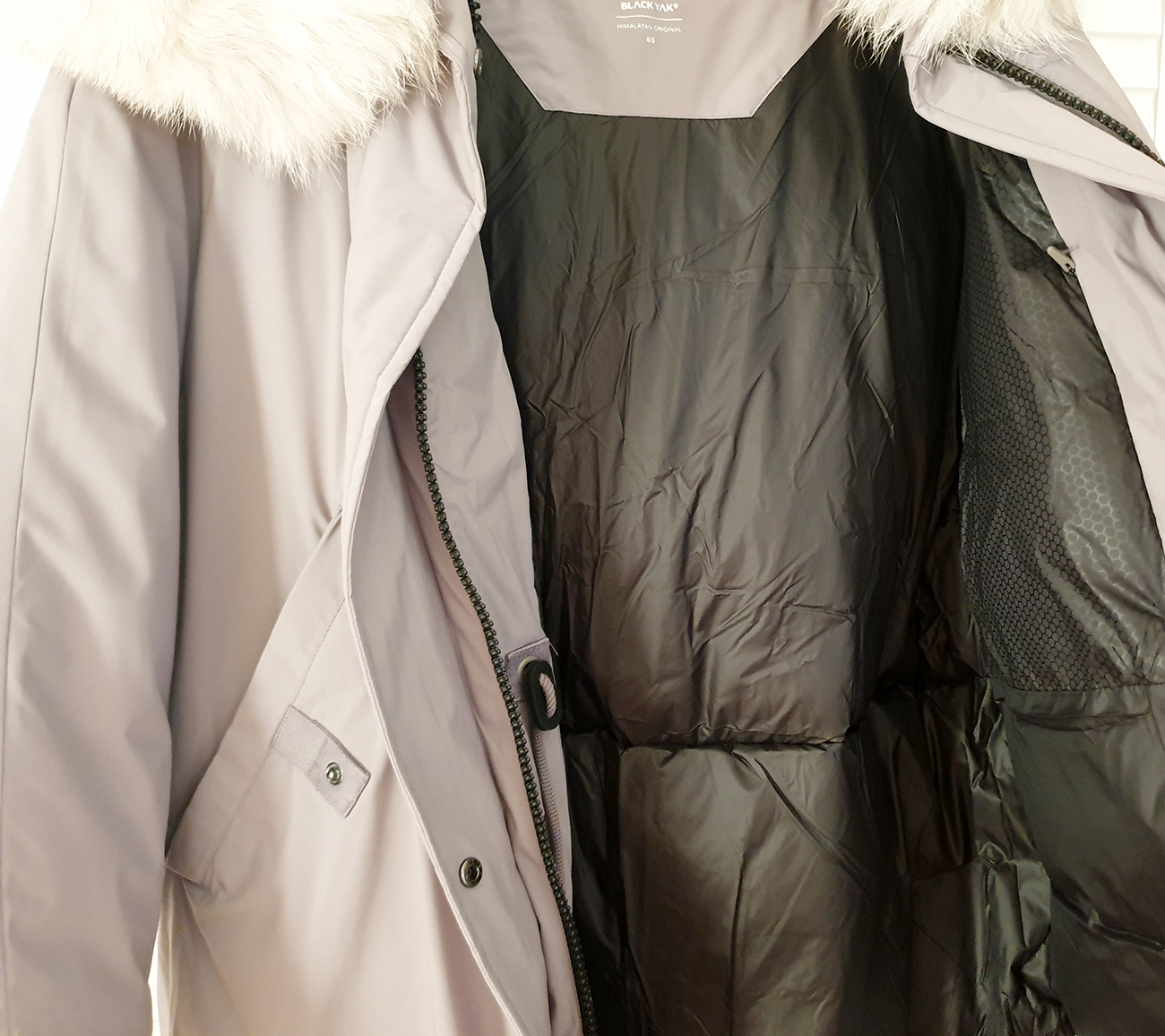 블랙야크 롱 패딩에는 로고가 깔끔하게 새겨져 있었어요. 빛에 의해서 보였다 안 보였다? 하는 금박? 느낌으로 찍어냈습니다. 블랙야크를 의미하는 브랜드 심벌과 블랙야크 이니셜 그리고, 패딩 점퍼의 콜드 제로라는 상품명이 새겨져 있습니다. 로고는 왼쪽 팔 윗부분에 새겨져 있는데요. 화려하지도 않고, 크게 새겨지지 않아서 보기 좋았습니다. 패딩 점퍼가 전체적으로 깨끗하고 깔끔하게 디자인된 느낌입니다.