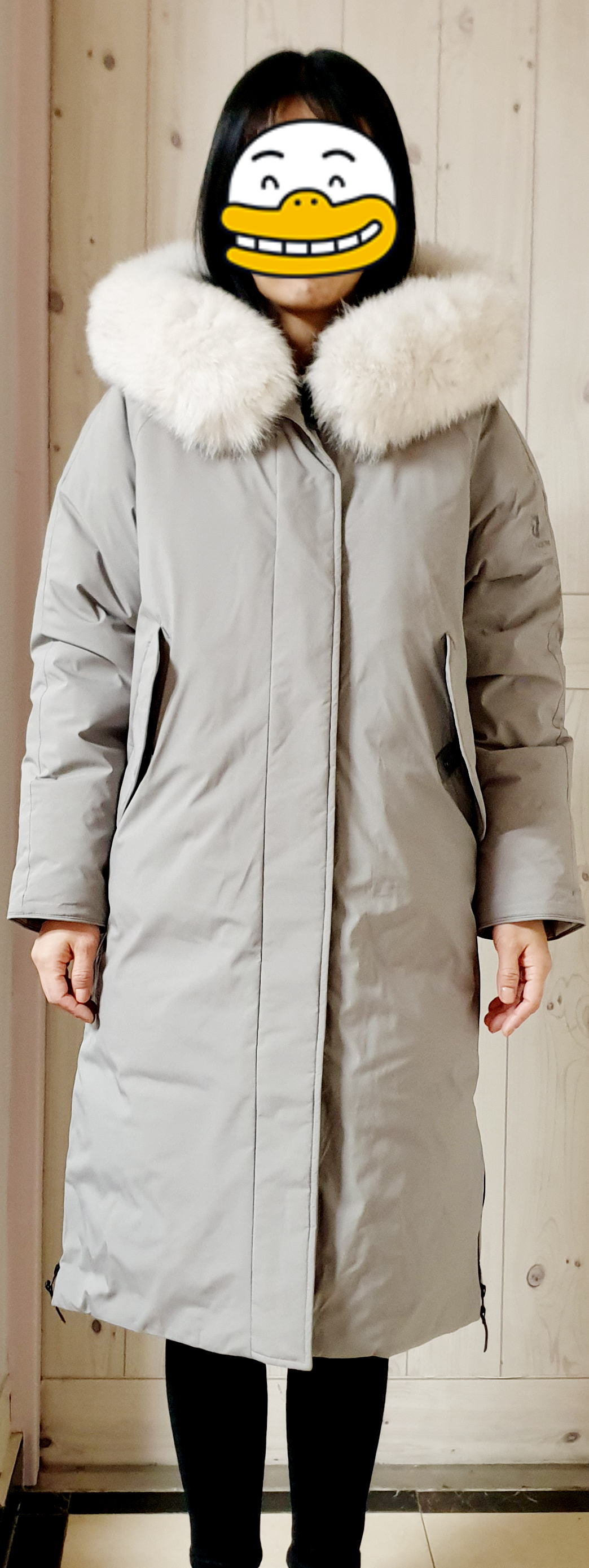 저의 착용 사진입니다. 디자인이 젊어 보이는 롱 패딩이에요. 가볍고 따뜻했습니다. 색상은 3가지 컬러로 알고 있는데, 블랙과, 그레이 베이지, 카키색이 있습니다. 제가 구매한 색상은 그레이베이지 컬러입니다. 사진으로 나온 색상은 완전 베이지색에 가까운데요. 진짜 색상은, 맨 위 아이유 착용 컷 색상으로 보시면 됩니다. ^^