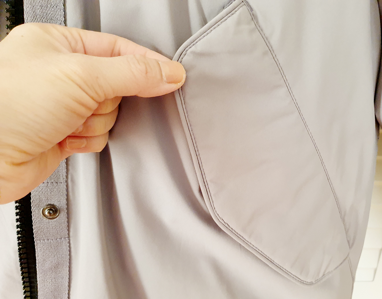 겉감은, 콜드제로레이디다운자켓 느낌처럼 재킷 느낌이 들면서도, 패딩 점퍼 느낌이 듭니다. 안감은, 비닐 재질로 발열 기능과 정전기 방지 안감으로 만들어졌습니다. 겨울철 정전기 방지가 되는 것이 얼마나 좋은지 몰라요~~!! 머리카락도 덜 날리고, 서로 몸이 닿을 때 타닥 하고 정전기도 일지 않으니 너무 좋더라고요.^^